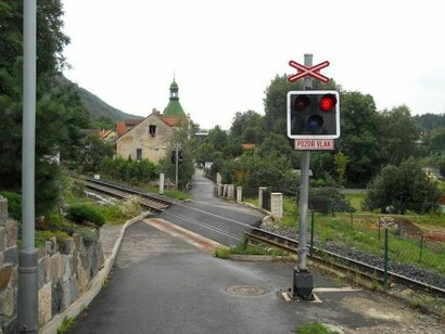 Le strade sovente incrociano delle linee ferroviarie protette a volte da passaggio a livello. In queste occasioni occorre fare moltissima attenzione! Quando il semaforo lampeggia fermatevi immediatamente! Le sbarre scendono molto rapidamente e molto rapidamente arriva il treno. Conosco questa situazione da altri precedenti viaggi in auto in repubblica Ceca. Tratti in discesa si alternano a decise salite. Il fondo nel bosco non è buono, a volte anche con sassi in discesa. Molto ben segnalato, ma “selvaggio”, il percorso passa attraverso foreste di abeti e pini, con strade spesso in cattive condizioni, che variano tra ghiaia e fango. Incontro una coppia di cicloturisti spagnoli. Lei davanti in canottiera mi anticipa su un unico passaggio asciutto a lato di una pozza. Sono partiti da Praga e hanno intenzione di arrivare a Strasburgo. Scambiamo informazioni sulle caratteristiche della strada, alloggi e fontane. Loro viaggiano in completa autonomia con tenda e fornello e mi avvisano che, nelle piccole città, nessuno parla inglese e, naturalmente, io come loro, non parlo ceco.