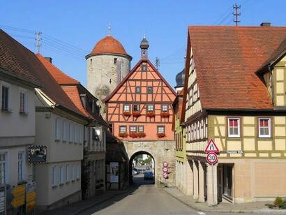 Quasi tutti i tetti delle case in Germania sono coperti da pannelli solari. Infatti le normative tedesche negli ultimi venti anni hanno sostenuto il loro sviluppo e grazie a questa lungimiranza, oggi la Germania è il paese leader mondiale nell'esportazione delle tecnologie ad energia rinnovabile. Dopo poco, attraversato un bel bosco in leggera discesa, arrivo a Rothenburg, gioiello di architettura medioevale. L'approccio a Rothenburg è da ovest attraverso il famoso ponte doppio. Dopo la Porta Kolbolzell, la piazza di fronte al Rathaus è piena di turisti in attesa per l’ora piena dell’orologio. Rothenburg o.d. Tauber è una delle città e borgo medievale più famosa della Germania. Quando si cammina attraverso le mura della città quasi completamente conservato con torri, si è entusiasti per il fascino e la bellezza di questa città. Le numerose case a graticcio, il municipio bellissimo e le numerose chiese nelle strade acciottolate, trasportano i visitatori in una intatta città medievale. Da un lato dei bravissimi musicisti in strada accompagnano una giovane cantante lirica.