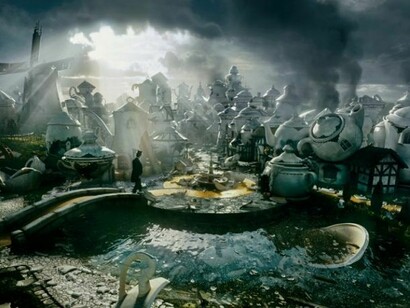 Simile dialettica cosmica fra le due polarità e il vento caldo/freddo la troviamo nell’Antro delle ninfe omerico e porfiriano e nel Cantico dei cantici quando si invocano l’Austro e il Noto. La centralità del giardino edenico del Cantico dei cantici ritorna nella centralità della casa di Dorothy che si sposta nel regno di Oz proprio perché viene a coincidere con l’occhio del ciclone, e non a caso la terra nuova è un nuovo Eden temperato, sintesi di Nord e Sud. La terra dell’avventura infatti appare con al centro la Città degli smeraldi e tutto attorno il deserto, come per un oasi. E il tema dell’“occhio” e del “mezzo” appare con insistenza nel racconto in quanto è in mezzo alla fronte che Dorothy riceve il bacio della Fata del Nord, sigillo apocalittico di preservazione, e alle porte della Città devono essere indossati occhiali verdi, cioè si deve cambiare lo sguardo.