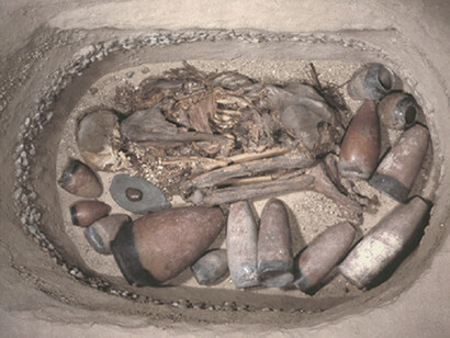 Gerzeano: è la fase successiva (Naqada II), compresa in un periodo che si colloca intorno al 3600-3100 a.C. In questo momento, la società agricola si consolida grazie ai progressi nei sistemi d’irrigazione e per l’inarrestabile fenomeno della desertificazione, le località dove è presente una società intellettualmente vivace (ad esempio, la zappa è ideata in questo periodo) sono costrette a spostarsi nella località di el–Gerzeh, nel Basso Egitto, ossia nell’area che dà il nome a questa età. I villaggi acquistando una certa importanza sembrano consolidare certi aspetti propri dell’urbanesimo. Ritrovamenti archeologici effettuati ad el-Amrah, infatti, hanno rivelato l’esistenza di un complesso di abitazioni del Gerzeano in cui è possibile individuare quello che sarà la tipica configurazione del centro cultuale egizio, con relativi palazzi e necropoli. La ricchezza dei corredi tombali testimonia uno sviluppo delle pratiche funerarie e una maturazione peculiare delle tradizioni religiose. Il taglio della selce, che si è già affermato durante il Neolitico, raggiunge ora una notevole perfezione. È sufficiente ricordare i coltelli rituali in avorio scolpito con lame appunto in selce ritrovati a Gebel el-Arak. Elaborate decorazioni compaiono sul vasellame. I motivi in ocra rossa sono ispirati alla fauna e alla flora del Nilo. Si tratta di un processo evolutivo che indica la presenza di un potere centrale in grado di organizzare sia le varie attività economiche e sociali, sia la protezione degli insediamenti e territori in cui si svolgono queste attività. Si sviluppa parallelamente alla società contadina in senso stretto, un vero e proprio compartimento dedicato all’artigianato, finalizzato a soddisfare le diverse esigenze di un mondo in rapida crescita come quello che è presente sulle sponde del Nilo. Si spazia così dai vasai agli intagliatori, fino agli scultori d’avorio.