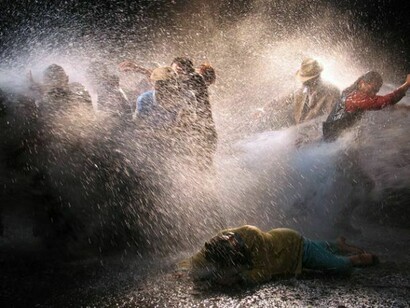 In quest'installazione video/sonora, un gruppo di diciannove personaggi, uomini e donne appartenenti a differenti etnie e ambienti sociali, viene improvvisamente colpito da forti getti d’acqua provenienti da entrambi i lati dell’inquadratura, talmente violenti che alcuni personaggi cadono per terra immediatamente, mentre altri riescono a stento a restare in piedi. Improvvisamente com'era arrivata, l'acqua si ferma, lasciando gli individui attoniti e increduli, alcuni sollevati, altri agonizzanti.