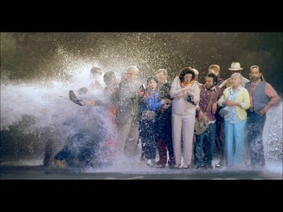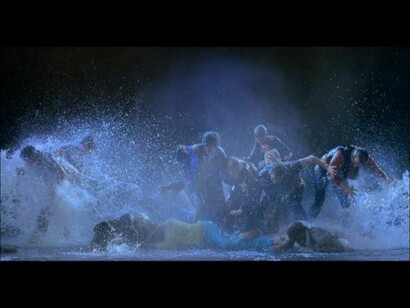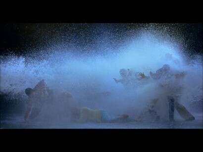 L’azione è stata registrata da vivo ad alta velocità, ma si svolge al rallentatore per una durata di circa 10 minuti. Lo scopo di questo escamotage tecnico è di evidenziare le sottili sfumature di luce e colore nell’impatto esplosivo dell’acqua nonché le espressioni e i gesti individuali dei personaggi.