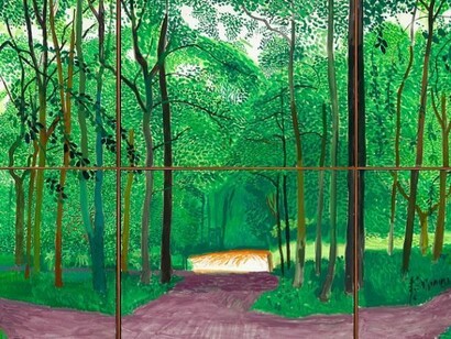 Ma il più grande interesse di Hockney è come la tecnologia abbia permesso agli artisti di sperimentare nuove prospettive e creare così nuovi modi di considerare il mondo che li circonda. Se Jan van Eyck usa specchi convessi per creare un campo visivo più ampio sulla tela (ricordiamo il celebre specchio posto alle spalle dei coniugi Arnolfini datato 1434), Hockney si rivolge al suo equivalente moderno: la videocamera. Nove schermi a Led accorpati insieme mostrano i filmati della stessa strada di campagna nel susseguirsi delle quattro stagioni. Il risultato è un video collage sincronizzato nei tempi, ma visivamente non allineato. Usando per ogni schermo una prospettiva differente l’occhio è costretto a eseguire una sorta di scansione sull’opera. Lo scopo è quello di rendere protagonista attivo lo spettatore dando una maggiore possibilità di narrazione.
