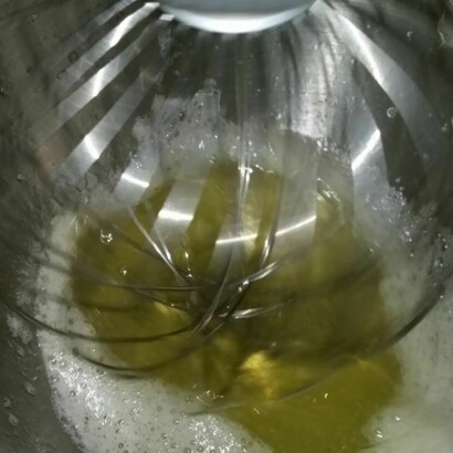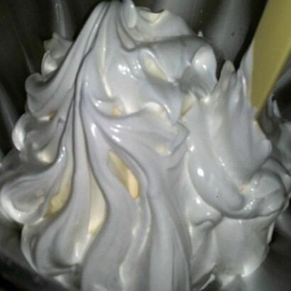 La prima cosa da fare è pesare gli albumi, tenendo conto che per fare due dischi di 20 cm di diametro e qualche meringhetta per guarnire bastano 100 grammi di albumi; per montare gli albumi io uso la planetaria con la frusta, ma è possibile ottenere lo stesso risultato con un frullino elettrico, ci vorrà solo un po' più di tempo. Metto l'albume nel contenitore della planetaria e la metto in funzione in modo da iniziare a montarli, quando hanno consistenza un po' schiumosa aggiungo la metà dello zucchero a velo, setacciato, e continuo a montare, a velocità alta, fino ad ottenere un composto fermissimo in cui la spatola stia in piedi da sola.
