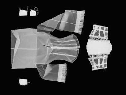 Il primo impatto, per il visitatore, è con una serie di immagini di disegni autografi di Ferré proiettati su teli sospesi, ma subito l'attenzione è catturata dalle simulazioni ai raggi x per capire, da dentro, come la camicia è stata realizzata. Attenzione particolare è rivolta ai materiali (taffetas, crêpe de chine, organza, raso, tulle, seta o cotone), al tipo di lavorazione (merletti e ricami meccanici, impunture eseguite a mano) fino all'impalcatura stessa del capo. Questa tecnica speciale, messa a punto in collaborazione con l’Opificio delle Pietre Dure di Firenze e realizzata dal fotografo fiorentino Leonardo Salvini, viene utilizzata per la prima volta in una mostra di moda.