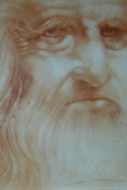- Luca Battiston, Leonardo, 2013, carta vetrata e terracotta su tavola, 30 x 25 cm
