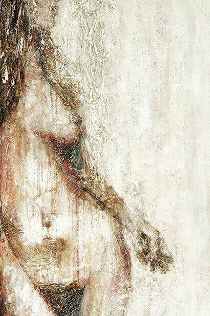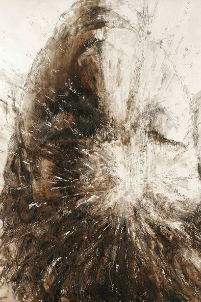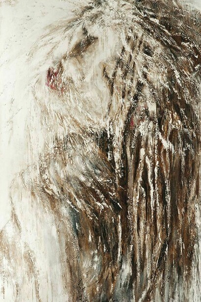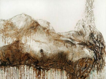 Dall’identità individuale dei Ritratti, Francesca Leone approda al «mutare dello scorrere delle forme come della vita che cambia» dei cicli Flussi Immobili e CorpoTerra. Il paesaggio diventa corpo umano femminile riconducendo alla mitologia dove la Terra è il corpo della dea Gea o Gaia. La Terra Madre genera i monti la cui morfologia diviene soggetto delle opere metamorfiche dell’artista. Le montagne, archetipi del profondo, basti pensare al Monte Olimpo dei Greci, nel loro carattere ascensionale, come nota il curatore, rappresentano per gli uomini e le donne, esseri stratificati, «il luogo della salita, della sfida e del raggiungimento della vetta, metafora del compimento della meta e, perché no anche, come in questo caso, di quella dell’arte».