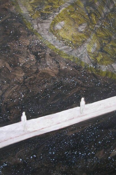 L’esito di questa elaborazione è un percorso attraverso spazi siderali che descrivono rotte astratte, mentali. L’ osservatore è invitato a intraprendere un viaggio emotivo attraverso questi mondi. E questo potrebbe essere un viaggio “verso la completa guarigione”, che trova la sua chiave nell’accettazione di una visione olistica dell’uomo e della realtà. - Sara Montesello