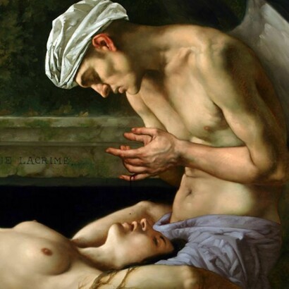- Roberto Ferri, Nella morte avvinti olio su tela, 110,5 x 150 cm, 2010, dettaglio