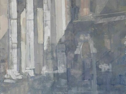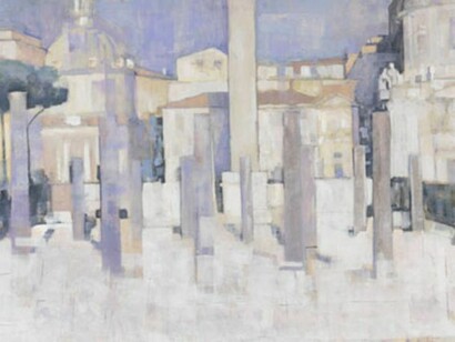 Così lei affronta le architetture di epoca imperiale come fossero un materiale al quale si sente di essere fedele e allo stesso tempo la partenza per un viaggio nella pittura in piena libertà. I colori dei mattoni prendono luminescenze rossastre e zafferano e parte dei marmi si colorano di malva e viola. I cieli si scuriscono o a volte diventano paglierini. Fausta compone le sue opere a partire da schemi geometrici dopo aver fatto un disegno a grafito dove cattura le essenze del luogo.