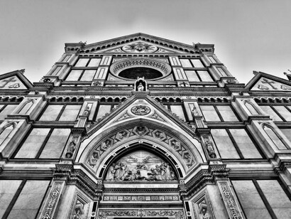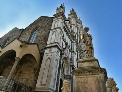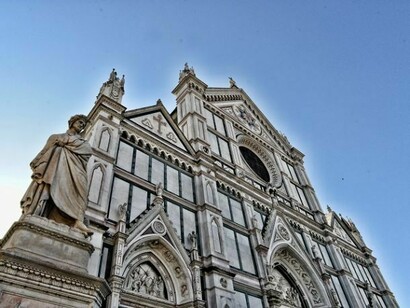 E poi la trippa, il cervello e gli schienali, la pappa al pomodoro... che fa diventà belli, come si dice ai bambini di qui, la ribollita cò l’olio bono, il peposo, la schiacciata còll’uva… e con questa magnificenza di sapori, anche l’occhio vuole la sua parte e, dalle finestre si scorge, come vicina di casa, la grandezza rinascimentale della Basilica di Santa Croce, vista da un’angolatura particolare, bella da sindrome di Stendhal, piena di luci e di candori marmorei, con una statua di Dante meditativo su una Piazza Santa Croce fatta di giochi di ragazzi che si rincorrono, di piccioni, di panche in pietra, di colori e grida e, a San Giovanni, la tradizione del Calcio Storico Fiorentino. Questa è la Firenze dei fiorentini, beceri e arguti, ignoranti ma colti bottegai, quelli che prendono in giro il mondo ma che non tollerano chi critica la Viola, quella... launsitocca!