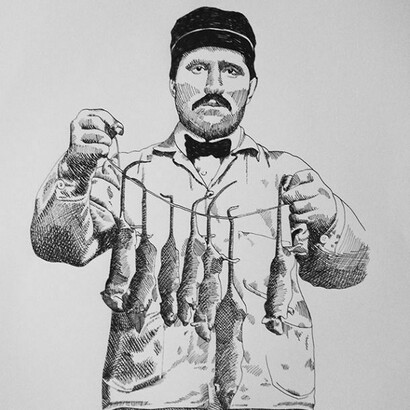 - Hélène Depotte, Le joueur de flute de Hamelin, 2011, inchiostro su carta, 65 x 55 cm, Courtesy Gagliardi Art System, Torino
