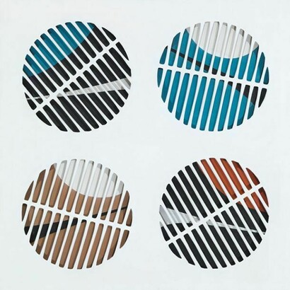Nel biennio 1965-66, le opere realizzate con tele cerate intagliate sembrano acuire questa polarità. Si tratta di lavori in cui l’artista utilizza un materiale d’uso quotidiano impiegato, di solito, per confezionare tovaglie stampate con motivi dozzinali di origine floreale o geometrica, creando effetti ottici stranianti. Gli intagli disegnano griglie che cambiano la percezione dei fondi, ma i fondi stessi iniziano ad accogliere nuove forme e nuovi materiali. Se, infatti, in opere come Grata del Brigantino (1965) e Interferenze (1966), le griglie si aprono ancora su fluide geometrie dipinte, in altri esemplari di questa serie (ad esempio Lousiana 2, del 1965), esse si affacciano su lastre di metallo speculare, accentuando così gli effetti di distorsione ottica.