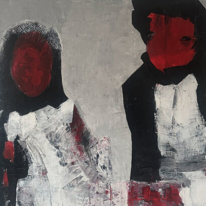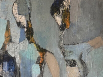 Her years working closely with herbal medicine continue to influence her sensitivity to material and process. There is patience in her approach. Layers are allowed to settle; surfaces evolve over time. She works independently and often develops her practice in series, returning to similar figures and compositional structures as a way of deepening emotional inquiry. Each painting feels like part of a larger internal conversation.